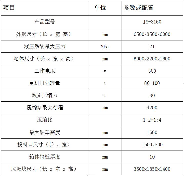 JY-3160 水平式四柱舉升垃圾壓縮設(shè)備用于對城鎮(zhèn)居民生活區(qū)、學(xué)校、醫(yī)院、公園景區(qū)、廠礦和機關(guān)單位的生活垃圾以及固體廢棄物的收集、壓縮減容和封閉轉(zhuǎn)運。