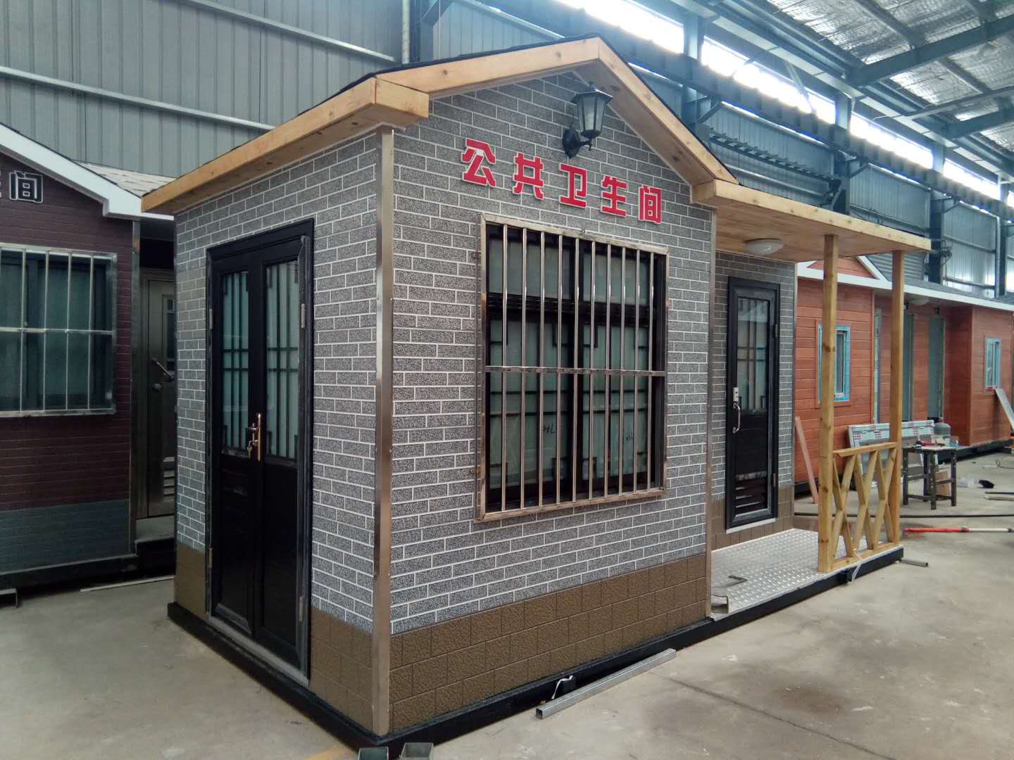1、房體結(jié)構(gòu): 采用輕鋼龍骨結(jié)構(gòu),鋼材全部使用國(guó)家標(biāo)準(zhǔn)鍍鋅鋼材。根據(jù)房體的大小特選用國(guó)標(biāo)方管(50-100)焊接而成。鍍鋅管厚度為2.8mm,方管經(jīng)過(guò)除銹后進(jìn)行鍍鋅、防腐處理。這樣就會(huì)延長(zhǎng)廁所使用壽命。